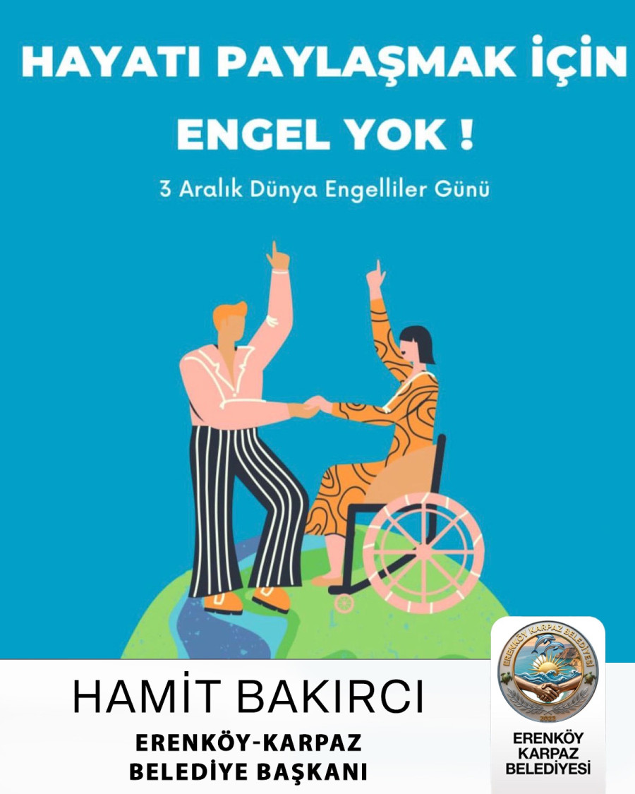 Erenköy–Karpaz Belediye Başkanı Hamit Bakırcı, “3 Aralık Dünya Engelliler Günü, toplum olarak birbirimizi daha iyi anlamamız, dayanışmamızı güçlendirmemiz için önemli bir hatırlatmadır.