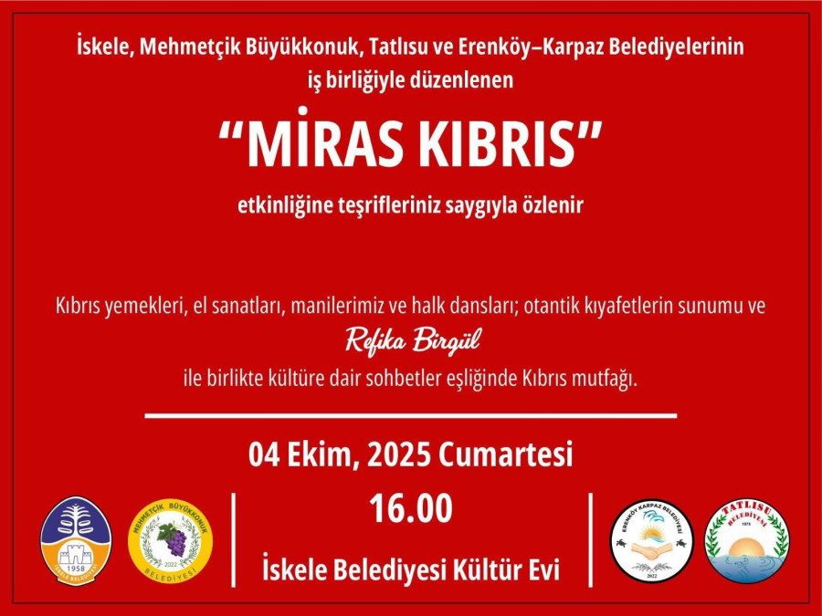 “MİRAS KIBRIS” Etkinliği 4 Ekim'de İskele'de