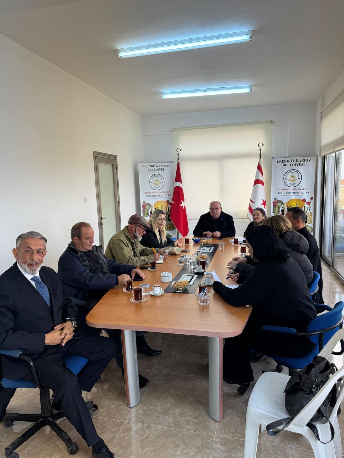 Kuzey Kıbrıs Türk Cumhuriyeti Cumhuriyet Meclis Başkanı Ziya Öztürkler ve beraberindeki heyet 17 Mart 2025 tarihinde, Erenköy-Karpaz Belediye Başkanımız Dr. Hamit Bakırcı'yı makamında ziyaret sorunları yaşarken yoğunlaştı gezdi. Karpaz bölgesindeki ziyaretleri çerçevesinde Erenköy-Karpaz Belediyesi'ni ziyaret eden KKTC Meclis Başkanı'na Danışmanı Sami Osmanlı ve Özel Kalem Müdürü İrem Uygunluk sırasında, Dr. Bakırcı, meclis başkanı Yenierenköy Muhtarı Safiye Mimar Sayar, meclis üyeleri ve parti temsilcileri ile toplantıda bulunuyor.